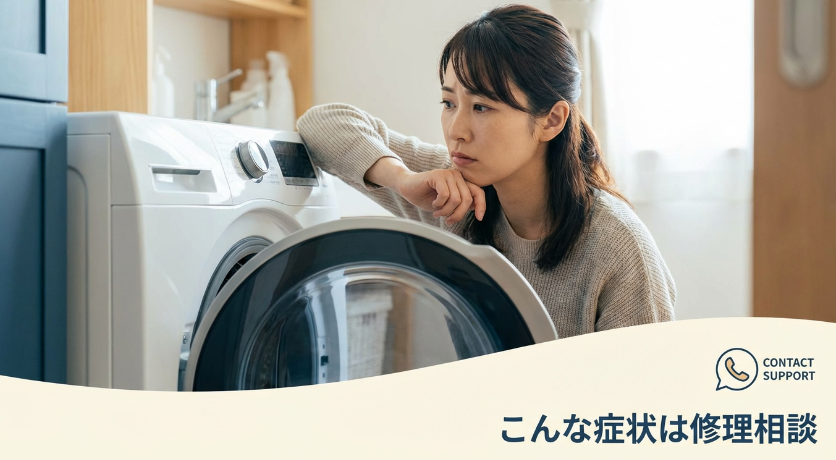 ここまでの直し方を試しても改善しない場合、機械側の不具合や部品の劣化の可能性が上がります。次のような症状があるなら、早めに購入店やメーカーサポートへ相談してください。