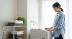 また、忙しい女性のライフスタイルに合わせて、家事の負担を減らせる便利な機能も検討すると良いでしょう。例えば、予約機能があれば、夜寝る前に洗濯物をセットしておき、朝起きる時間に合わせて洗濯が終わるように設定できます。帰宅時間に合わせて洗濯が完了するように設定することも可能で、時間を有効活用できます。スマートフォンと連携できるモデルであれば、より細かく洗濯完了時間を設定できるものもあります。