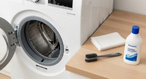 業者は洗濯機を部分的に分解し、専用の高圧洗浄機や洗剤を使って、内部のダクトやヒートポンプに詰まったホコリを物理的に除去します。